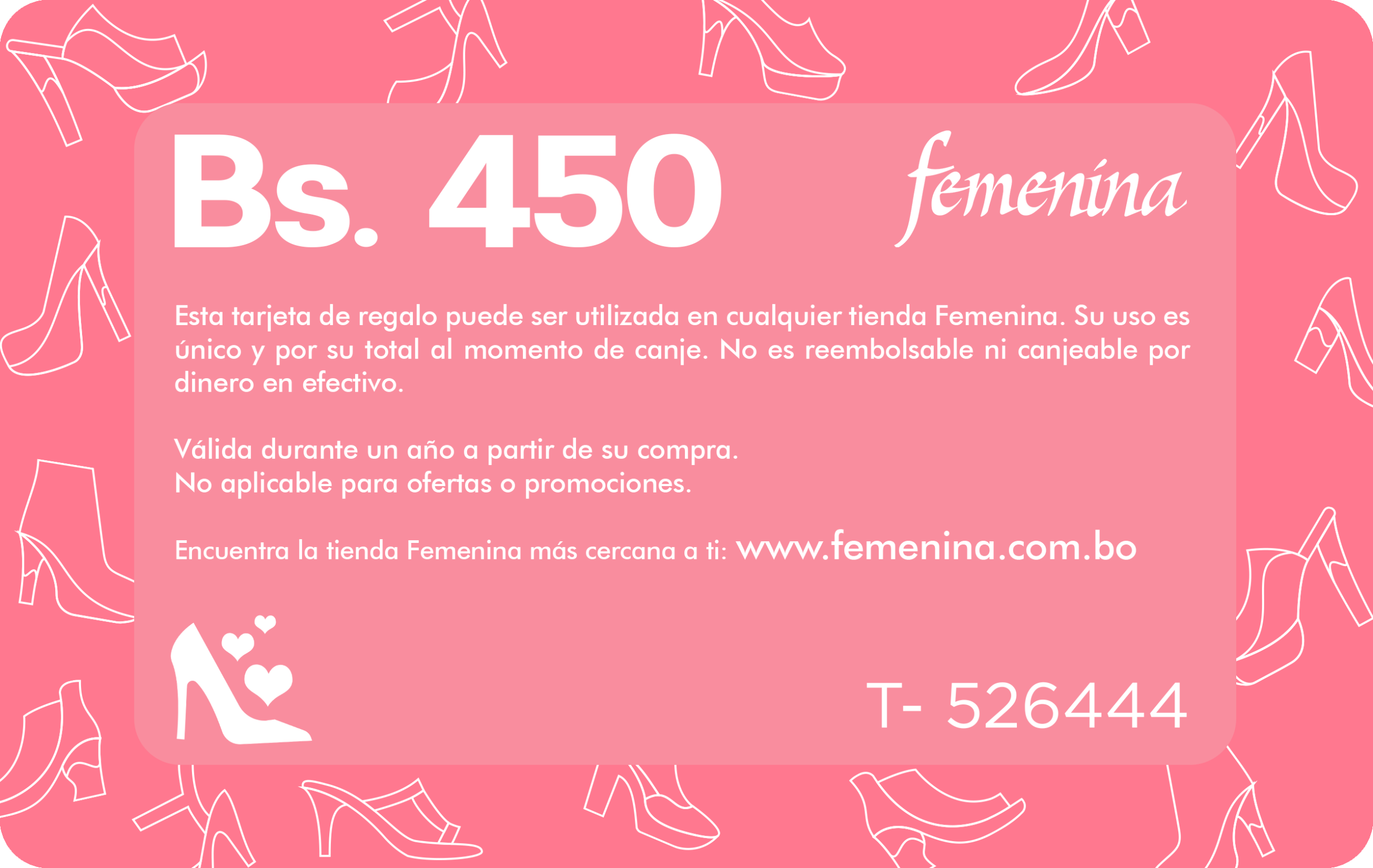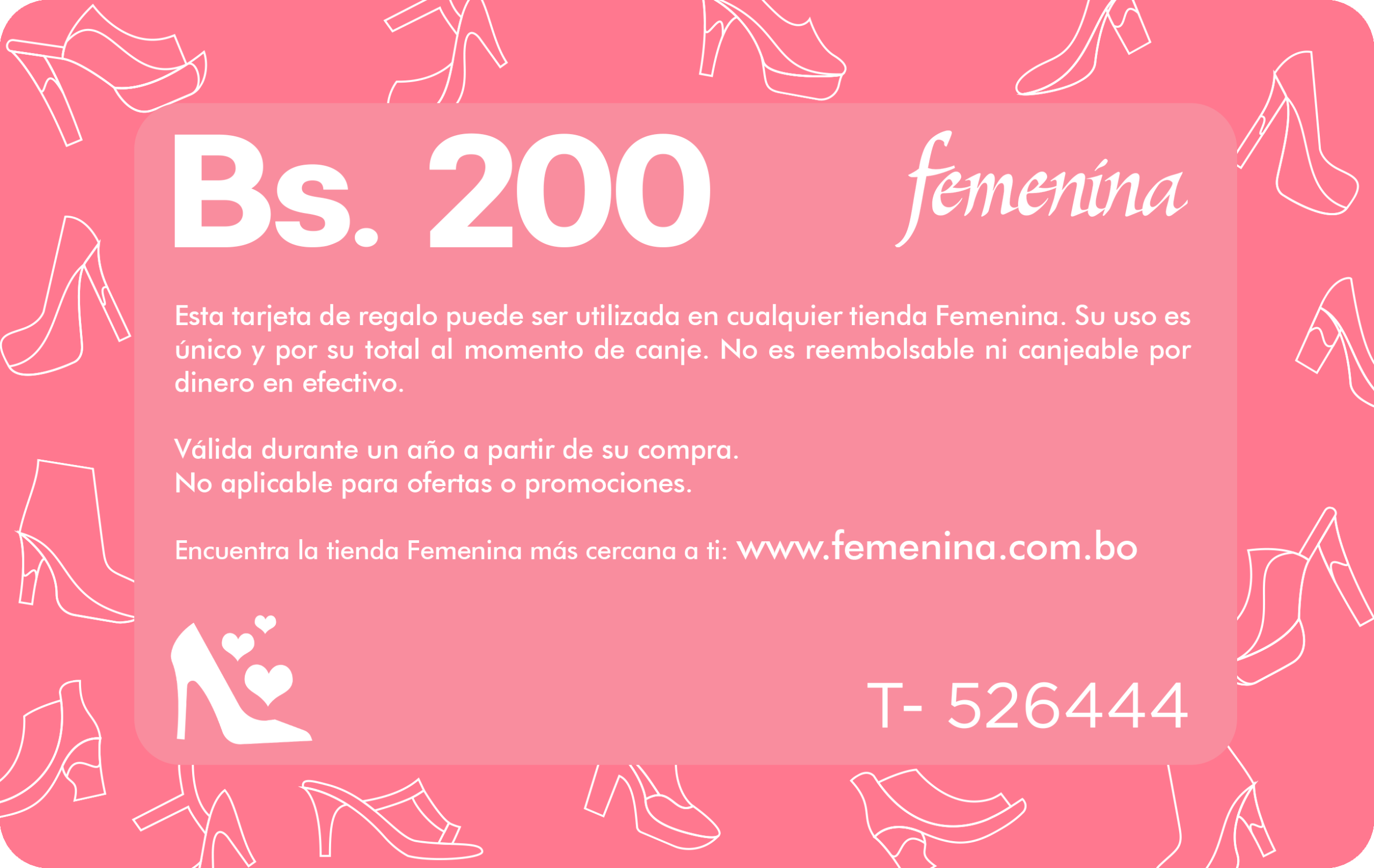 Cada GIFT CARD es válida en tiendas Femenina a nivel nacional.